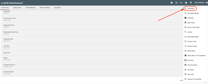 It is possible to add calculations to custom forms. Calculations can be used to score Inspection forms or more complex data driven strategic analyses. Here is how to create calculated form fields: