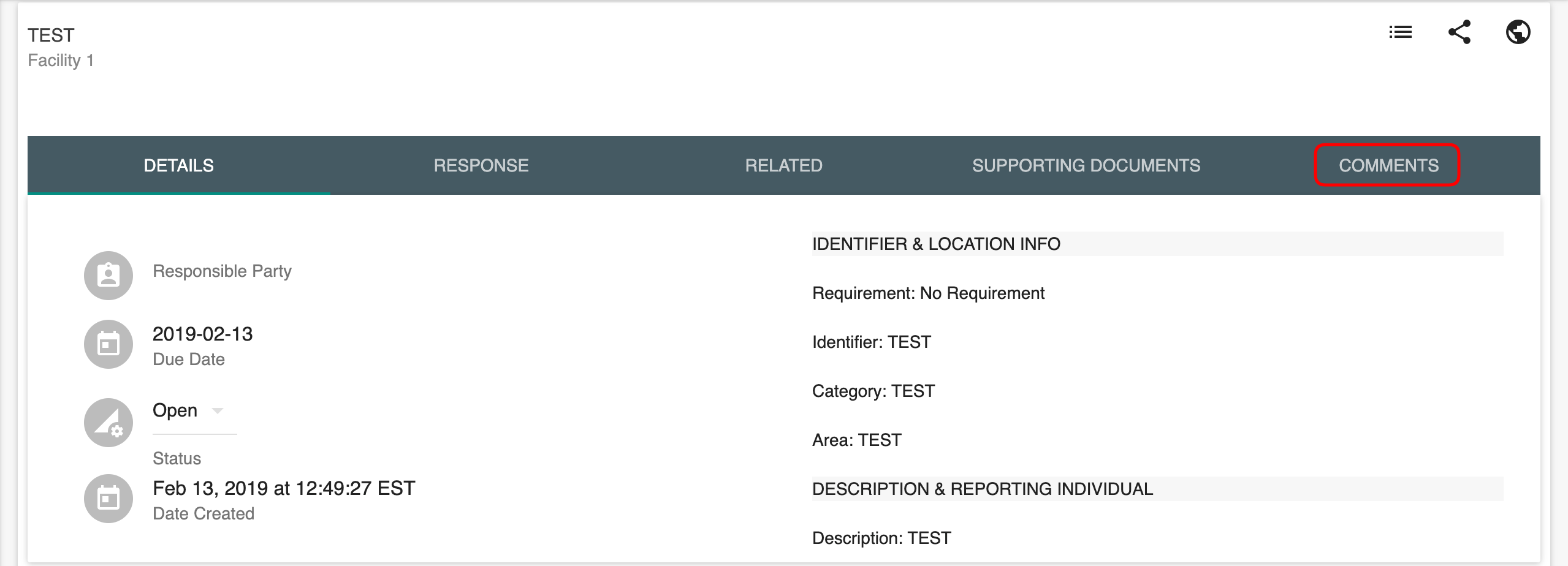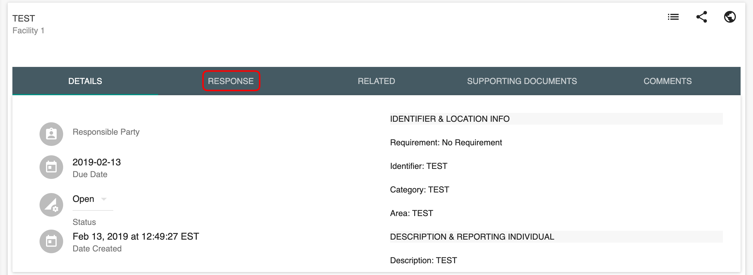 5.) From here you can use this window to edit and update your corrective action, respond to the corrective action, upload supporting documents or leave a comment. These will be explained in detail further below.