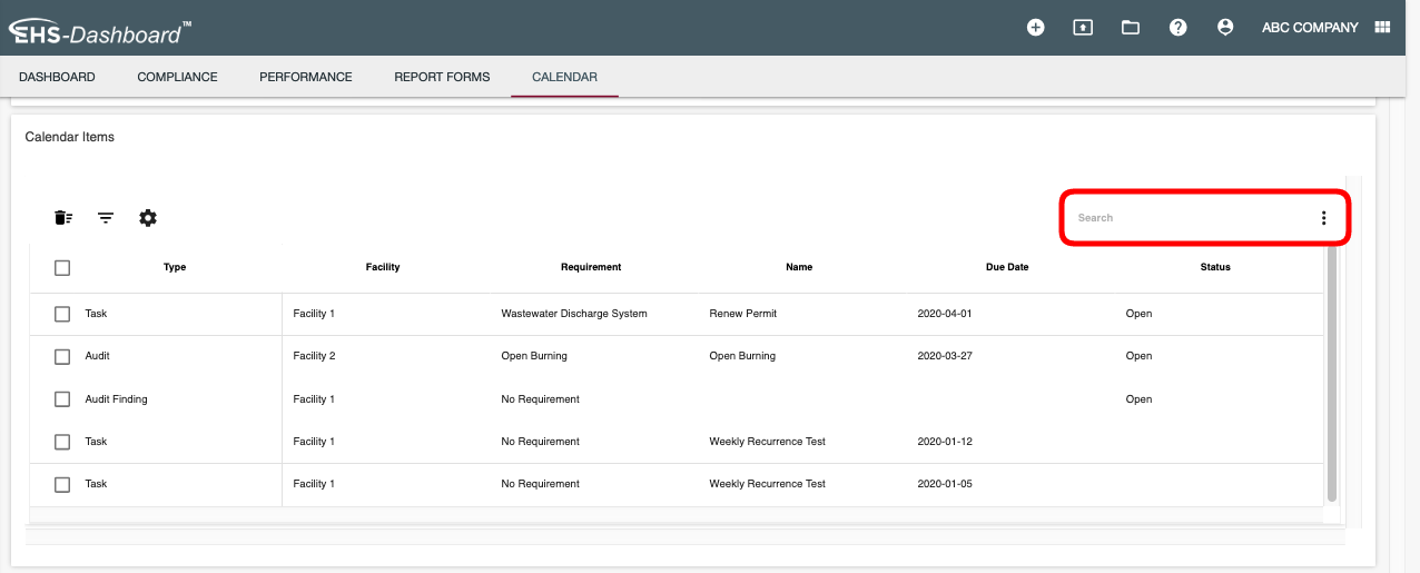 3.) Use the "Search" filter to locate the specific Corrective Action you are looking for: