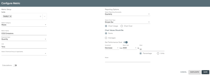 3. Edit an existing Environmental Metric (or add a new one if your metric does not yet exist.)